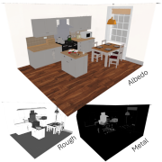 | Recent generative models directly create shaded images, without any explicit material and shading representation. From text input, we generate renderable PBR maps. We first train separate LoRA modules for the intrinsic properties of albedo, rough/metal, normal. Then, we introduce cross-intrinsic attention using a rerendering loss with importance-weighted light sampling to enable coherent PBR generation. Next to editable image generation, our predictions can be distilled into room-scale scenes using SDS for large-scale PBR texture generation. Our method outperforms text -> image -> PBR methods both in generalization and quality, since directly generating PBR maps does not suffer from the inherent ambiguity of intrinsic image decomposition. In addition, our design choice facilitates SDS-based PBR texture distillation. |
